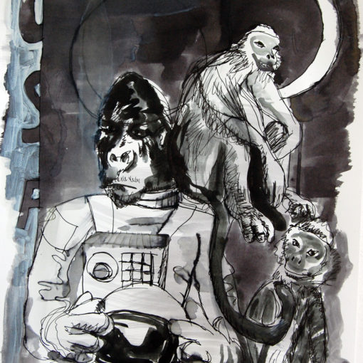 Published June 12, 2012 Moon Monkey II Moon Monkey II pen and ink brush 50 x 65 cm 2012 Lawrence WellsÂ